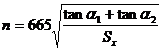 ①式與傳統求轉速公式完全一樣,但它誘導的前提是截然不同的,它是完全根據動顎運動軌跡求得的,完全符合復擺顎式破碎機動顎運動的實際情況。而傳統求得式的結果是建立在動顎平行移動的基礎上,完全不符合動顎實際運動感情況,并相差懸殊。且根據①式可知,轉速n、噬角a和擺動行程Sx三個參數是相匹配的。當機構設計后Sx為定值,主軸轉速n值隨動顎壓縮到終點時齒面噬角a值改變而改變。